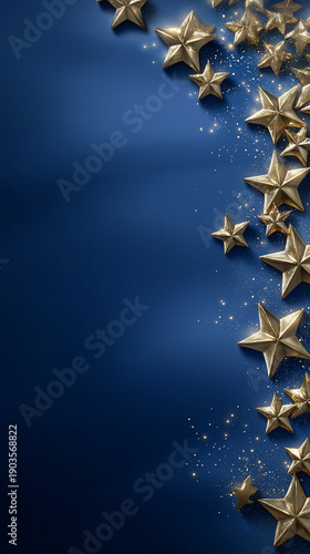 Obraz premium Golden Stars and Sparkles on Deep Blue Background