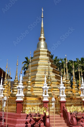 © Globepouncing, Fototapeta premium Golden Stupa Surrounded by Smaller Spires, Wat Phantao, Chiang Mai