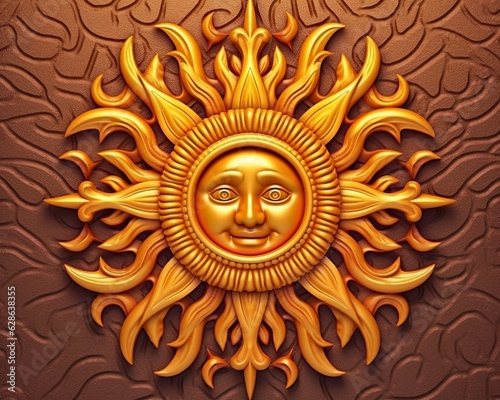 © AberrantRealities, Fototapeta premium golden sun with face on a brown background