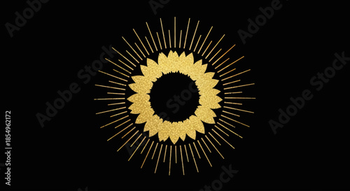 © gudangPIXEL, Fototapeta premium Golden Sunburst Mandala on Black Background