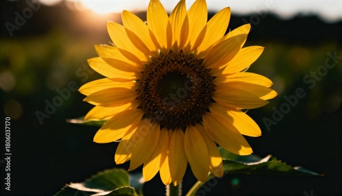 Fototapeta premium Golden sunflower bathed in warm sunlight at golden hour, creating a vibrant...