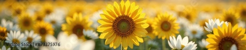 Fototapeta premium Golden sunflower face down in a field of white petals , nature, fields, petals