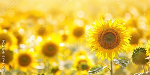 Fototapeta premium Golden Sunflower Field: A breathtaking landscape of sunflowers in full bloom,...