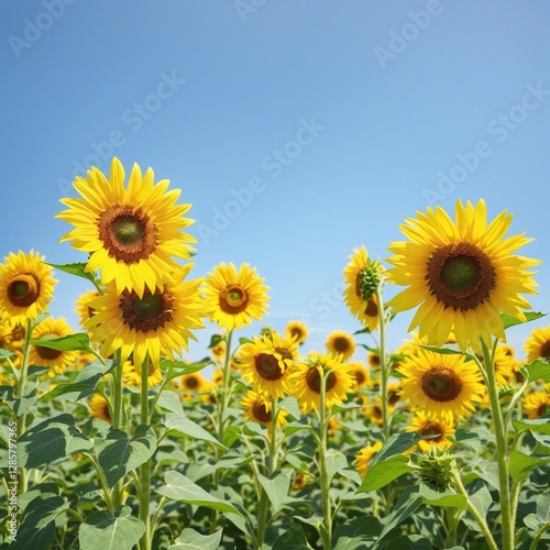 Fototapeta premium Golden Sunflower Field Beneath a Brilliant Blue Sky