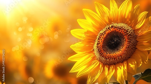© Aziz, Fototapeta premium Golden sunflower in a sunlit field