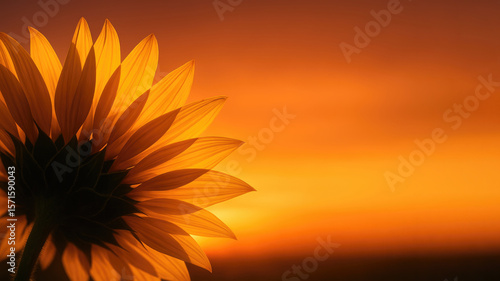 Obraz premium Golden Sunflower Petals AgAInst Warm Sunset Sky yellow orange