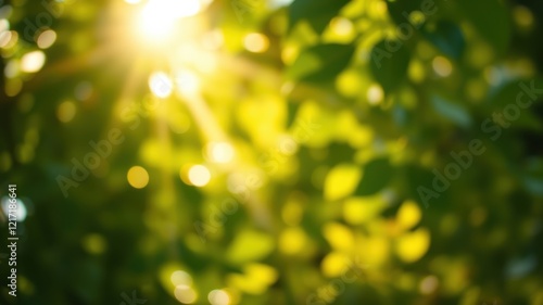 Obraz premium Golden Sunlight Filtering Through Lush Green Foliage, Creating a Dreamy,...