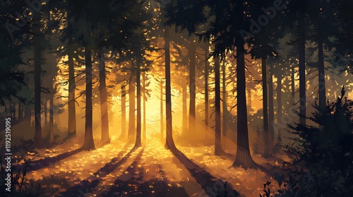 © Farid, Fototapeta premium Golden Sunlight Illuminates a Forest Path