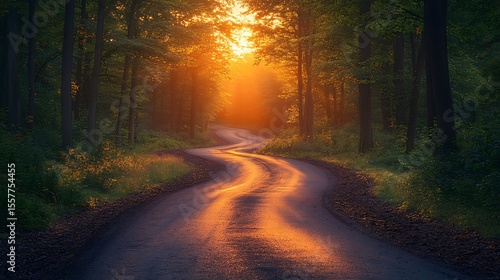 Fototapeta premium Golden sunlight path through forest