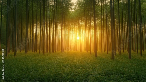 © Bebek, Fototapeta premium Golden Sunlight Piercing Forest