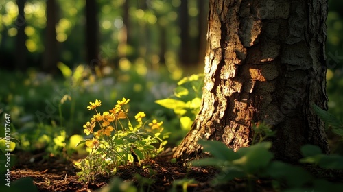 Obraz premium Golden Sunlight Through Forest