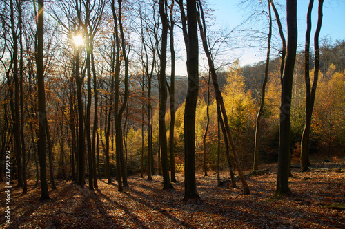 Obraz premium golden sunny autumn forest in october