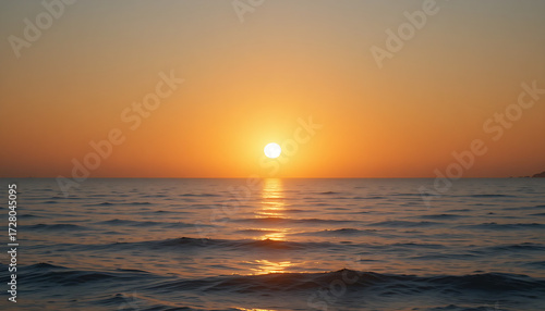 Naklejka premium Golden Sunrise Over Calm Sea Horizon Symbolizing Hope and Positivity
