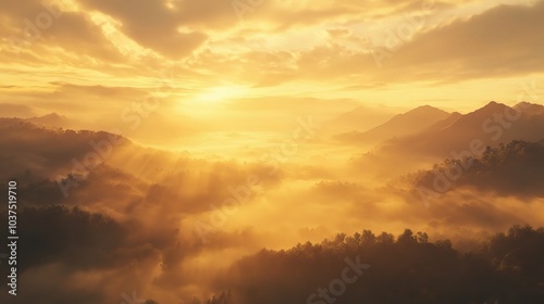 Fototapeta premium Golden Sunrise Over Misty Landscape