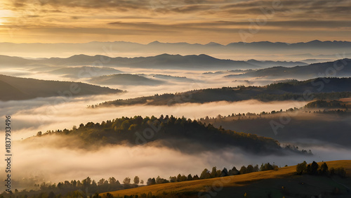 Fototapeta premium Golden sunrise over mountains