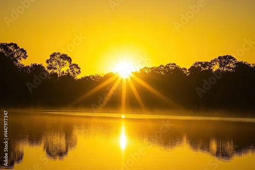 © Muhammad, Obraz premium Golden Sunrise over Still Water