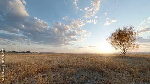 © BirD, Fototapeta premium Golden Sunrise over Wheat Field with Lone Tree sunrise wheat field golden hour lone tree field sky