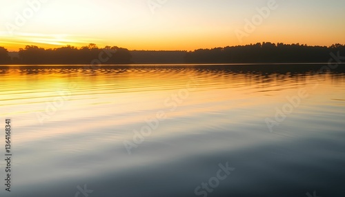 © faffy06, Naklejka premium Golden Sunrise Reflections on Serene Lake Waters