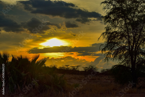 Obraz premium Golden sunset at Smaburu National Park, Kenya