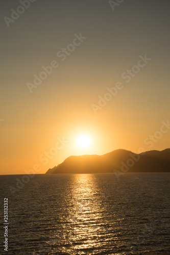 Naklejka premium Golden sunset at the cliff at the Italian Riviera in the Village of...