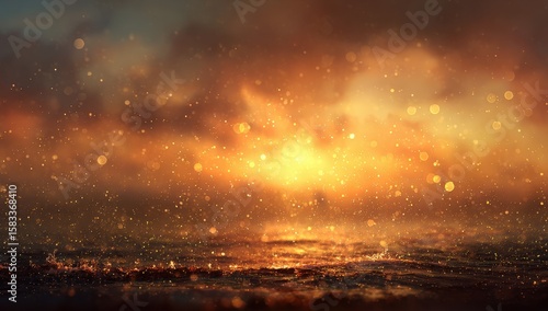 Fototapeta premium Golden sunset, fiery sky, misty ambiance