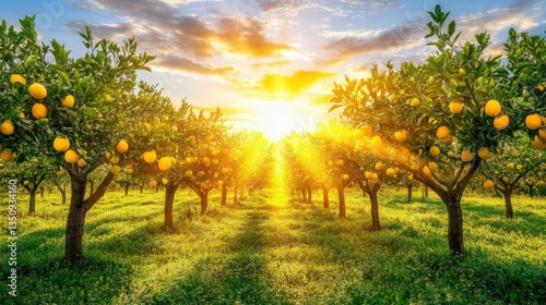 © Bullan, Fototapeta premium Golden Sunset in a Fruit Grove