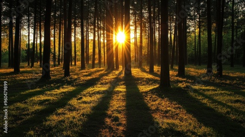 © Erna yuliyanti, Obraz premium Golden Sunset in the Forest