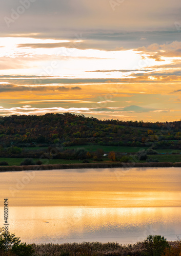 © Krisztian, Fototapeta premium Golden sunset in Tihany above the lake.