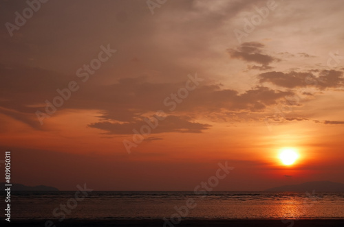 Obraz premium Golden Sunset on beach at Pakmeng Beach, Trang, Thailand