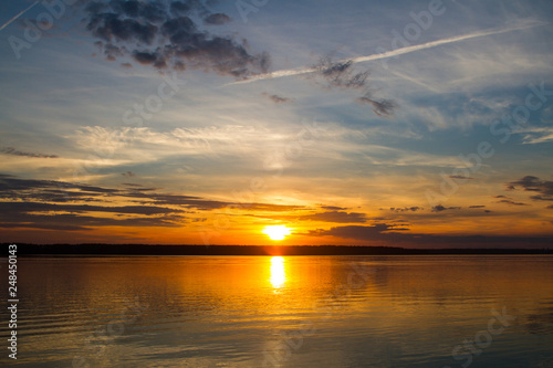 © Alexey Kartsev, Naklejka premium Golden sunset on the lake