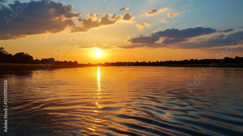Naklejka premium Golden sunset over a calm river