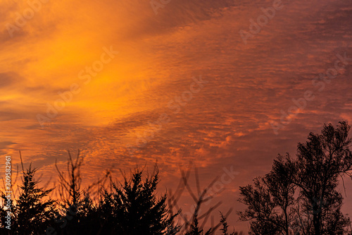 © Phyre Sky, Fototapeta premium Golden sunset over a rural landscape and countryside with trees silhouetted