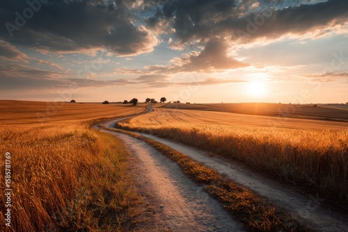 © Bagas, Naklejka premium Golden sunset over a rural road