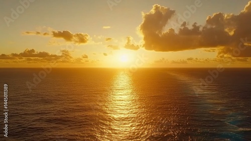 Fototapeta premium Golden sunset over a vast ocean expanse.