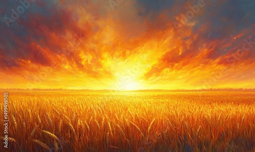 © rifai_art, Obraz premium Golden sunset over a wheat field
