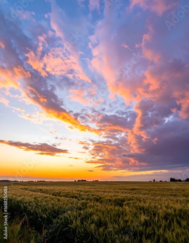 © FADLUN, Obraz premium Golden sunset over a wheat field