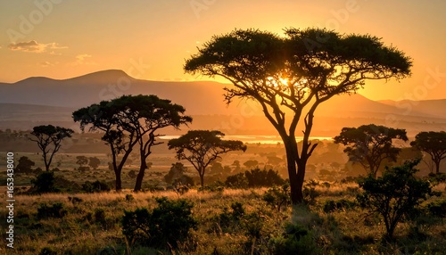 © Harry, Fototapeta premium Golden Sunset over African Savanna