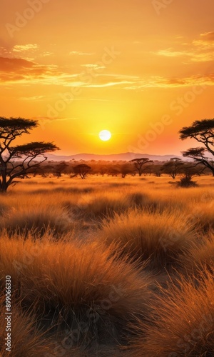 Obraz premium Golden Sunset over African Savannah.
