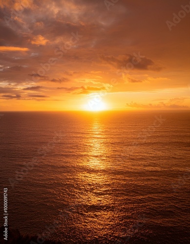 Naklejka premium Golden Sunset Over Calm Ocean Horizon