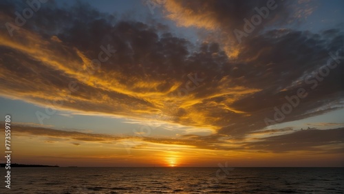© sitifatimah, Obraz premium Golden sunset over calm ocean horizon