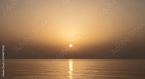 © Axelia, Fototapeta premium Golden Sunset Over Calm Ocean Water with Warm Hues