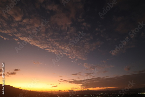 © WildPhotography.com, Obraz premium Golden sunset over city with dramatic clouds