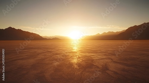 Fototapeta premium Golden Sunset over Desert Landscape with Mountains