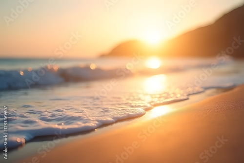 Obraz premium Golden sunset over gentle waves beach location bokeh effect tranquil...