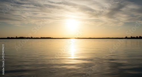 © arlisa, Fototapeta premium Golden sunset over lake panorama