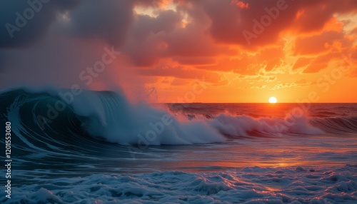 © Aleks, Fototapeta premium Golden sunset over ocean waves