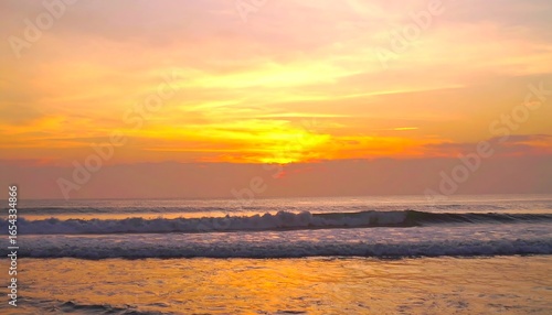 Fototapeta premium Golden sunset over ocean waves
