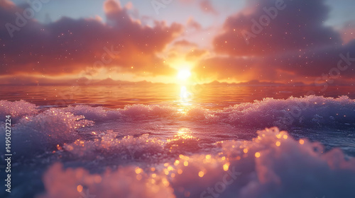 © Abab, Fototapeta premium Golden Sunset Over Ocean Waves - Abstract Background