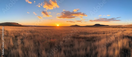 © adiba, Fototapeta premium Golden Sunset Over Prairie Landscape