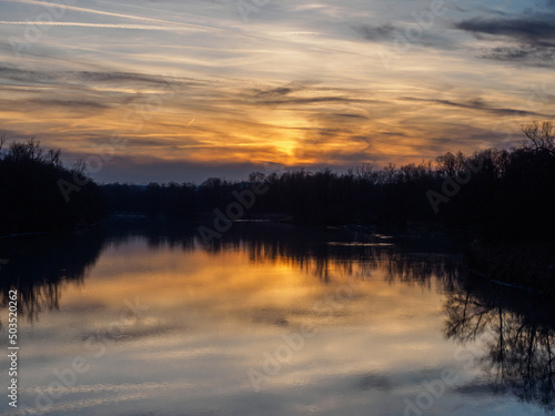 © Stefan, Fototapeta premium Golden sunset over river